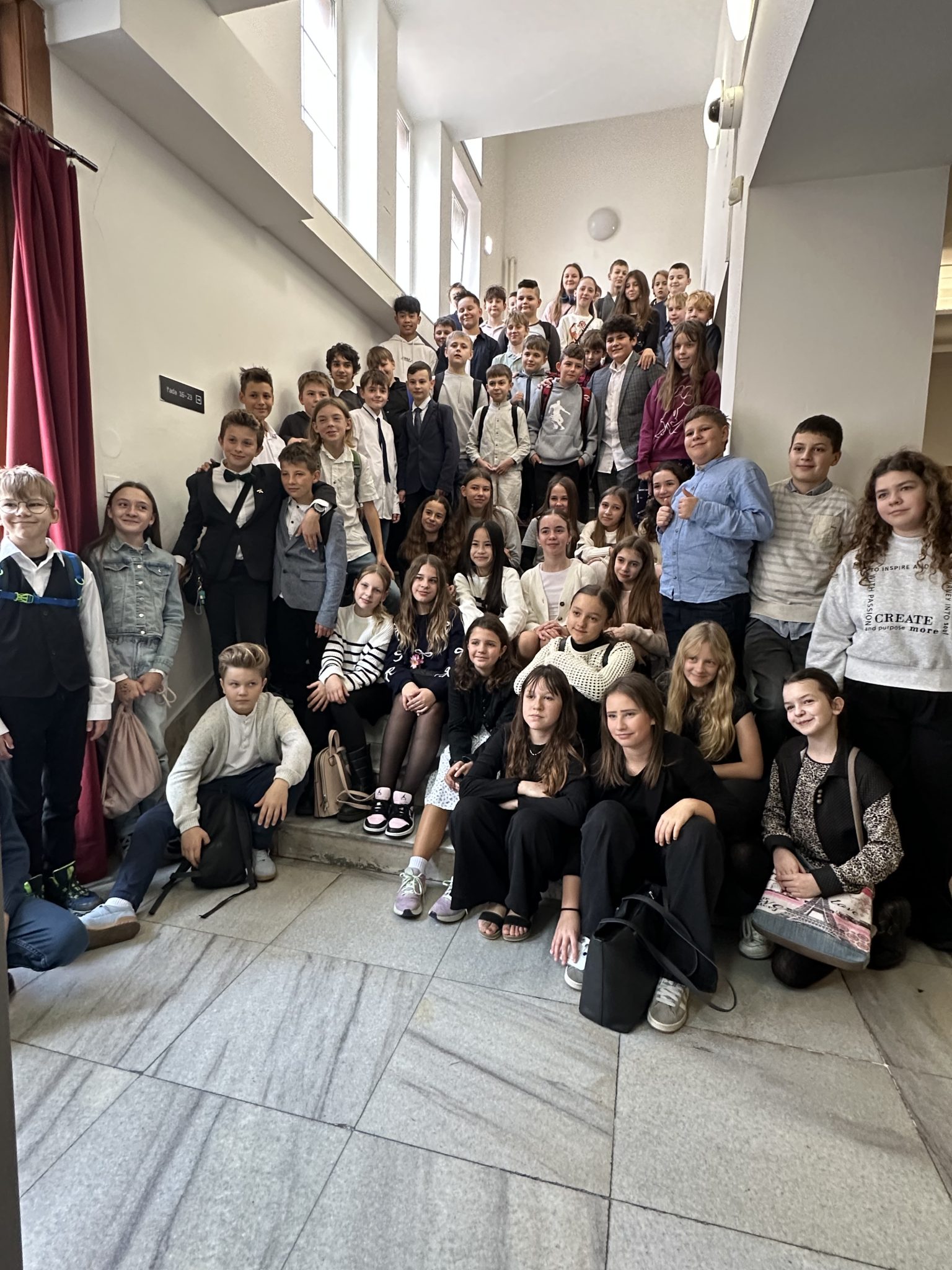 Ve středu 5. listopadu 2025 se šesťáci z Osmičky vydali vlakem do Ostravy na koncert Janáčkovy filharmonie. Čekal je zde program nazvaný Slibné začátky, který dirigoval