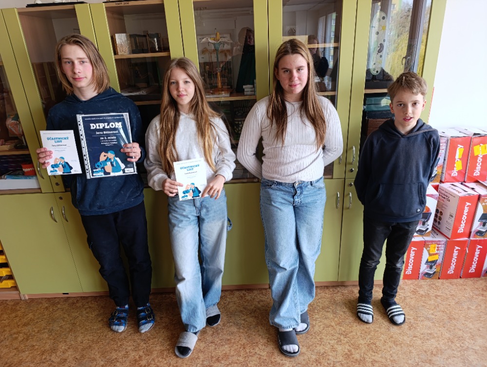 Okresní kolo biologické olympiády se uskutečnilo v pátek 31. března 2026 již tradičně na Pětce, tedy ZŠ Elišky Krásnohorské ve Frýdku. Soutěž má vždy několik částí –  vstupní úkol na zadané téma, test znalostí, mikroskopování a v neposlední řadě poznávání 20 druhů rostlin a živočichů. Letos se celkem zúčastnilo 36 mladých přírodovědců. Naši školu reprezentovali v kategorii C žáci 8.A Jan Bittner a Lucie Kučerová a v kategorii D František Kupka ze 6.E a Julie Pustějovská ze 7.B. Honza vybojoval krásné 2. místo a postupuje do krajského kola, které proběhne v Ostravě. Všem soutěžícím děkuji za vzornou reprezentaci školy.